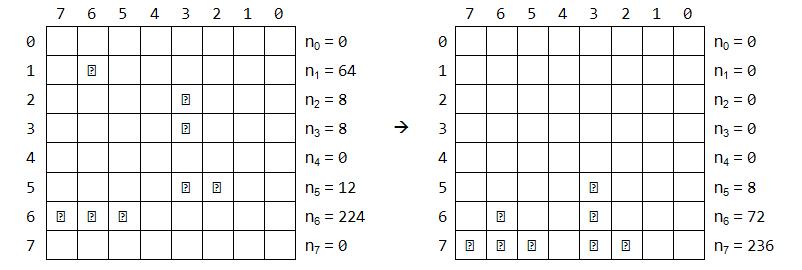 I have the following exercise: The numbers n0 to n7 are bytes represented in binary system. The task is every bit to drop either to the bottom or if it meets another bit it stays above it. Here is a visual example: